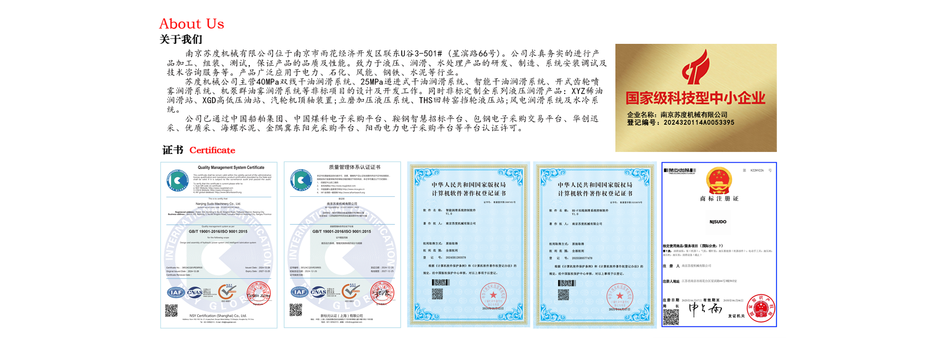 南京蘇度機(jī)械有限公司位于南京市雨花經(jīng)濟(jì)開(kāi)發(fā)區(qū)聯(lián)東U谷3-502# (星濱路66號(hào))。得益于南京以及長(zhǎng)三角地區(qū)的潤(rùn)滑產(chǎn)業(yè)集群優(yōu)勢(shì)資源,公司求真務(wù)實(shí)的進(jìn)行產(chǎn)品加工、組裝、測(cè)試,保證產(chǎn)品的品質(zhì)及性能。致力于液壓、潤(rùn)滑、水處理產(chǎn)品的研發(fā)、制造、系統(tǒng)安裝調(diào)試及技術(shù)咨詢(xún)服務(wù)等。產(chǎn)品廣泛應(yīng)用于電力、石化、風(fēng)能、鋼鐵、水泥等行業(yè),長(zhǎng)期與國(guó)內(nèi)大型的重機(jī)企業(yè)及設(shè)計(jì)院合作,潤(rùn)滑系統(tǒng)隨主機(jī)設(shè)備出口至東南亞、...